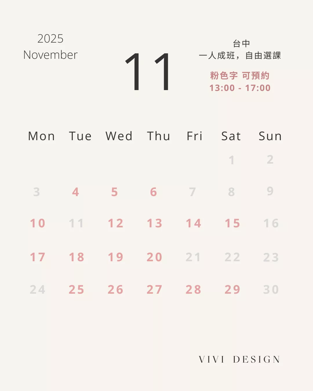 ✧ 請依行事曆,於下單時備註預約日期