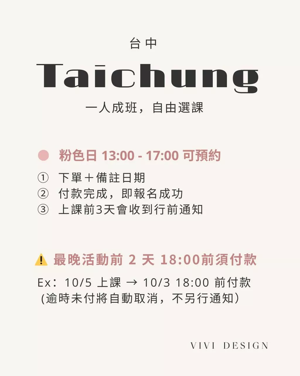 ﹡下單後請盡快付款,上課前2天18:00前未付款,將自訂取消訂單,不另行通知。Ex:4/5想上課,4/3 18:00前,需完成下單付款。